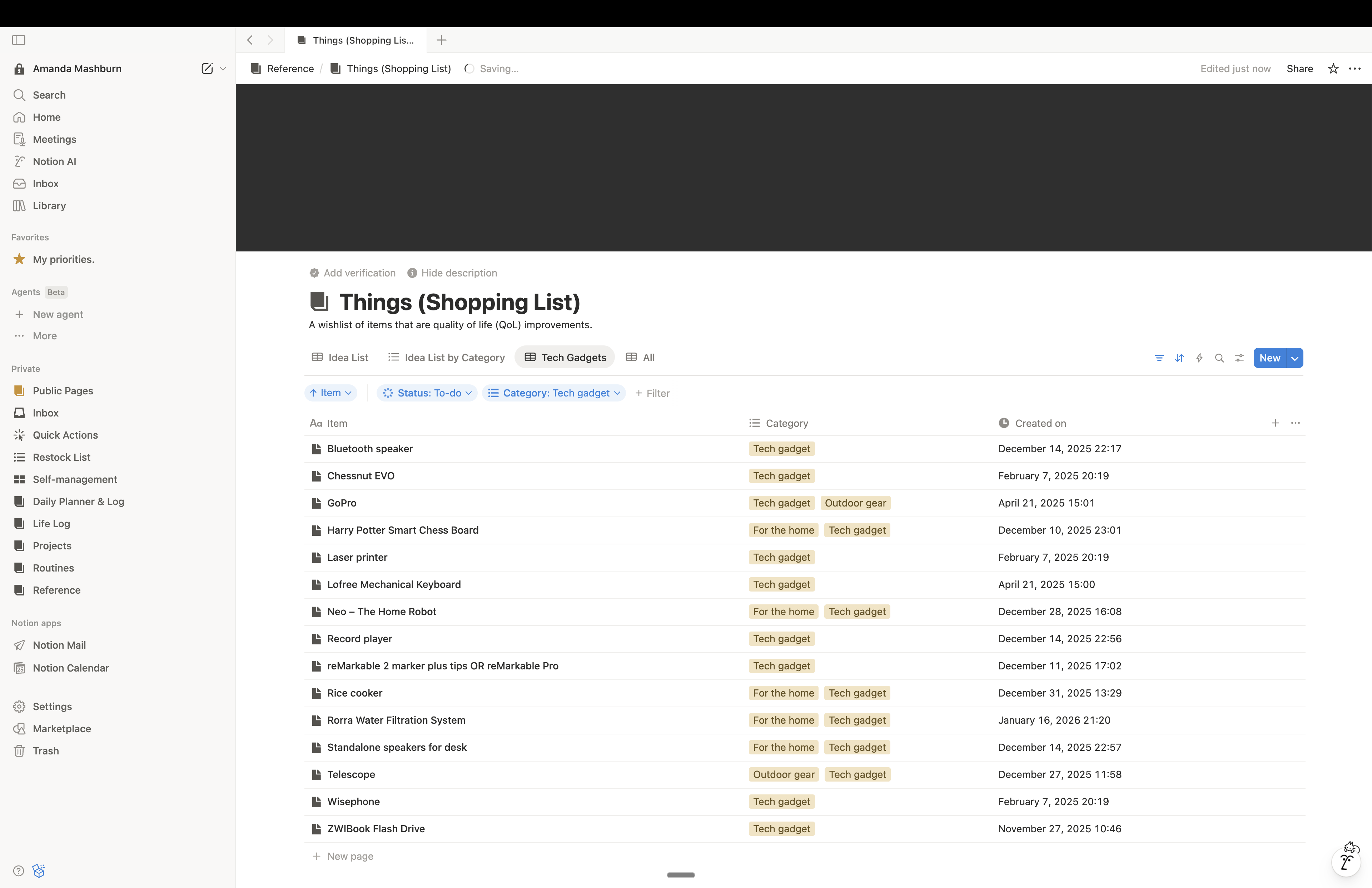 Most people buy things reactively — they see something, want it, and either buy it immediately or forget about it. The Things collection introduces intentional distance between wanting and buying. Every item goes into the database first. Then you decide. The result is a catalog of everything you’re considering, organized by category, with a status that moves from idea to purchased. It also creates something genuinely useful over time: a searchable record of what you’ve bought, what you’re watching, and what you’ve decided to skip.What will be covered